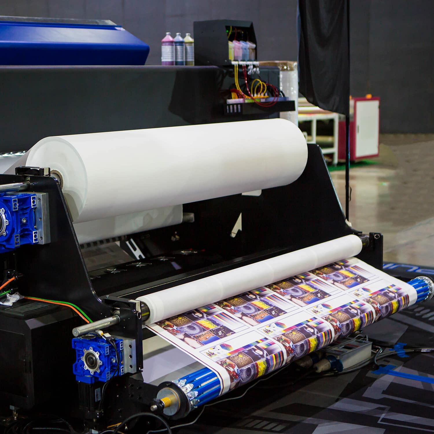 Innovative printing, 100% saturation on both sides using water based 1-2/c pigment dyes.